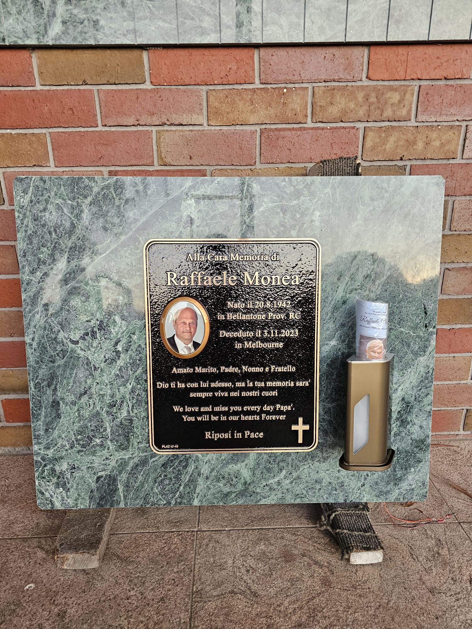 Monument plaques provide a timeless memorial solution, available in bronze and stone with personalised inscriptions that create a dignified tribute to celebrate your loved one’s life.